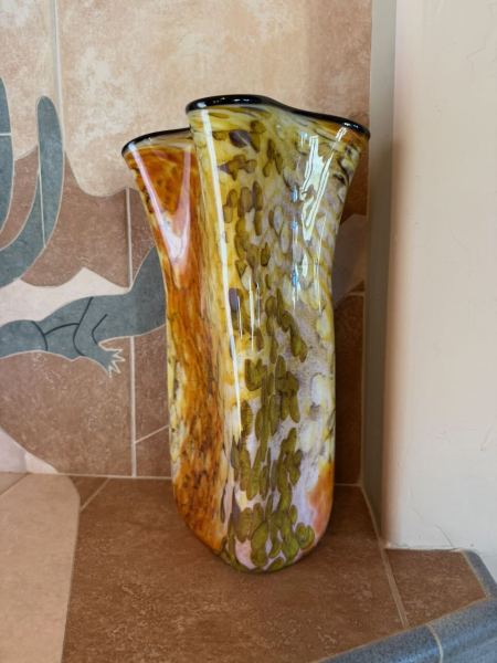 Philabaum glass vases, Steuben fish and dish,